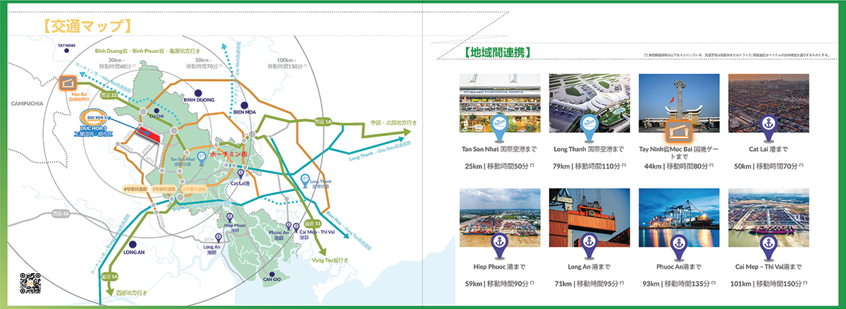 半径11km以内に、ドゥックホア3工業団地・都市部プロジェクトは、すでに稼働している多くの既存の工業団地(平均稼働率70~100%)と容易に接続できます。これによりサプライチェーンが多様化され、運用コストが削減され;多業種企業との協力機会を増やします。